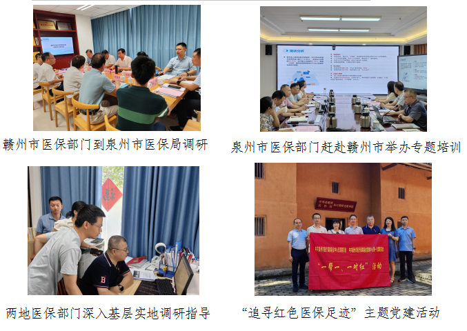 党建引领,融合发展求实效。赣州市与泉州市医保部门深化党建联动,联合开展“追寻红色医保足迹”主题党建活动,组织党员干部参观中华苏维埃共和国医疗保障史陈列馆,在瑞金这片红色热土上重温医疗保障事业发展历程。通过党建共建实现党性修养共提、组织活力共增、发展合力共聚,为两地医保结对帮扶工作注入强劲“红色动能”。