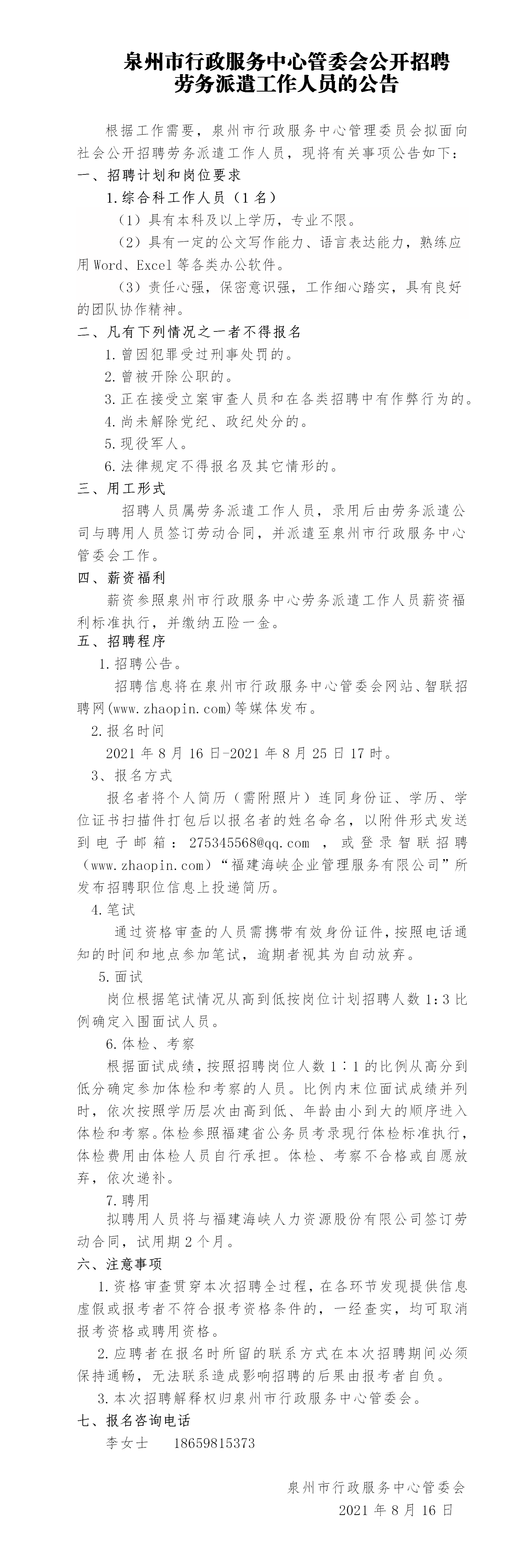 性爱网 管委会公开招聘劳务派遣工作人员的公告